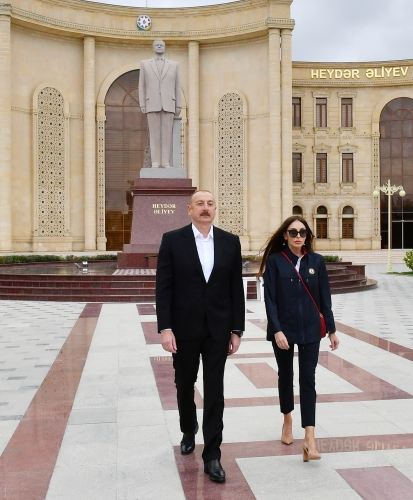 Dövlətimizin başçısı və Birinci xanım Salyan şəhərində Ulu Öndər Heydər Əliyevin abidəsini ziyarət ediblər.