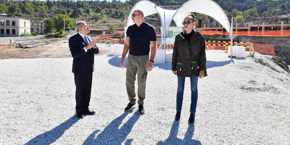 Azərbaycan Respublikasının Prezidenti İlham Əliyev və Birinci xanım Mehriban Əliyeva Şuşa şəhərində inşa edilən yeni yaşayış kompleksində tikinti işlərinin gedişi ilə tanış olublar.