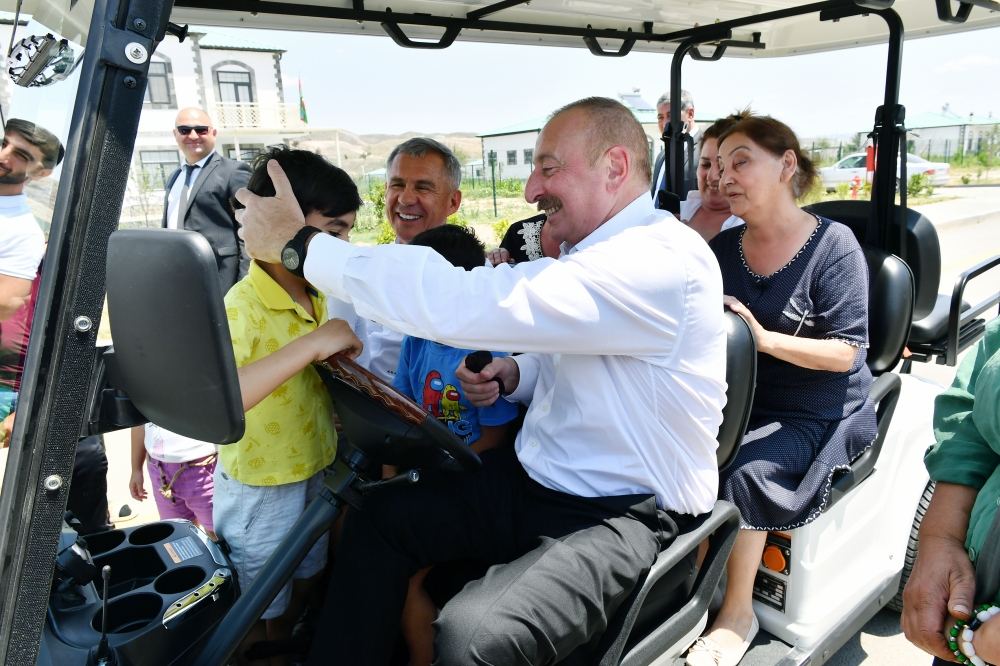 Prezident İlham Əliyev və Rüstəm Minnixanov elektromobillərlə Ağalı kəndini gəziblər.