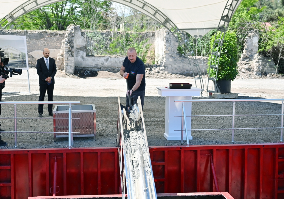 Layihə ilə tanışlıqdan sonra Prezident İlham Əliyev inzibati binanın təməlini qoyub