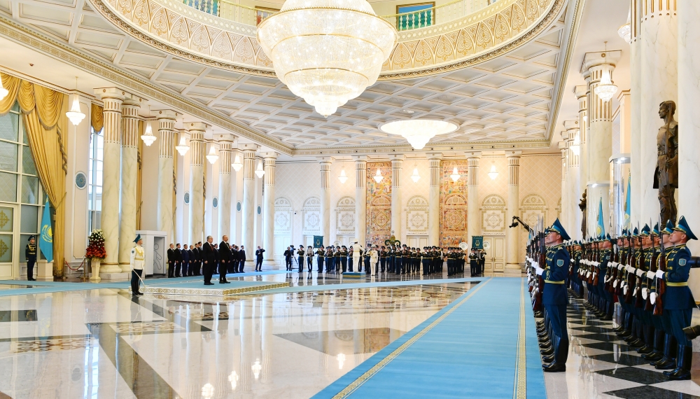 “Akorda” Prezident Sarayında Prezident İlham Əliyevin şərəfinə fəxri qarovul dəstəsi düzülüb.