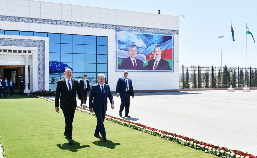 Hər iki ölkənin dövlət bayraqlarının dalğalandığı Ürgənc şəhərinin Beynəlxalq Hava Limanında Prezident İlham Əliyevi Özbəkistan Respublikasının Prezidenti Şavkat Mirziyoyev yola saldı.
