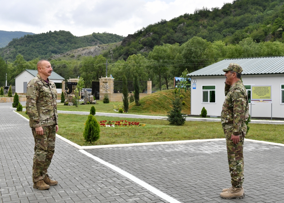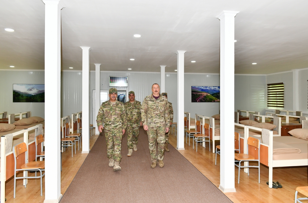Daha sonra Prezident İlham Əliyev hərbi şəhərcikdə əsgər yeməkxanası, tibb məntəqəsi, əsgər yataqxanası ilə tanış olub, yeni inşa edilən qərargah binasında yaradılan şəraitlə maraqlanıb.