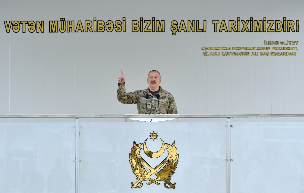 Vətən müharibəsində Ermənistanı məğlub etməyimiz onlar üçün dərs olmalıdır. Onlar hesab edirdilər ki, orduları məğlubedilməzdir və öz orduları haqqında olmayan şayiələri yayırdılar. Biz göstərdik ki, onlar Azərbaycan Ordusu qarşısında duruş gətirə bilməzlər. Onlar bəyan edirdilər ki, Azərbaycan öz torpaqlarını heç vaxt silahlı yollarla ala bilməz. Çünki həm qurulmuş istehkamlar, həm 30 il ərzində mühəndislik işlərinin aparılması, həm də ki, bu bölgənin coğrafiyası onlar üçün çox əlverişli idi. Biz bu mifi də dağıtdıq və göstərdik ki, güclü iradə olan yerdə, xalq-iqtidar birliyi olan yerdə, hərbçilərin vətənpərvərliyi olan yerdə heç kim bizim qabağımızda dura bilməz. Əgər yenə də Ermənistanda revanşist qüvvələr baş qaldırsa, bilməlidirlər ki, onları nələr gözləyir.