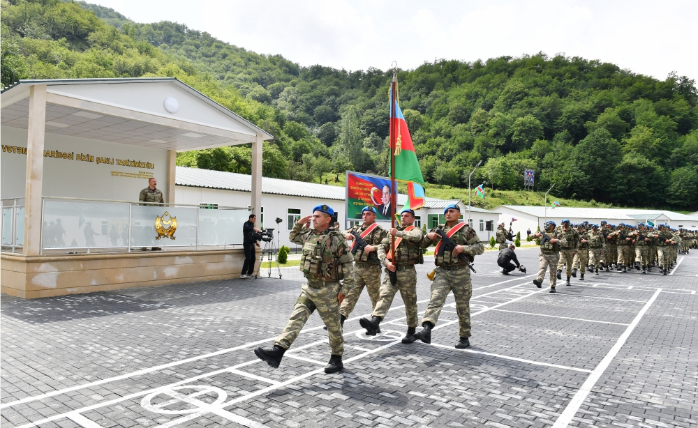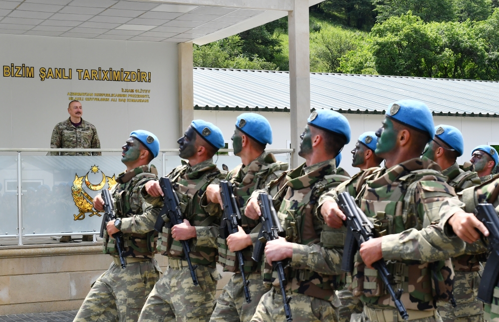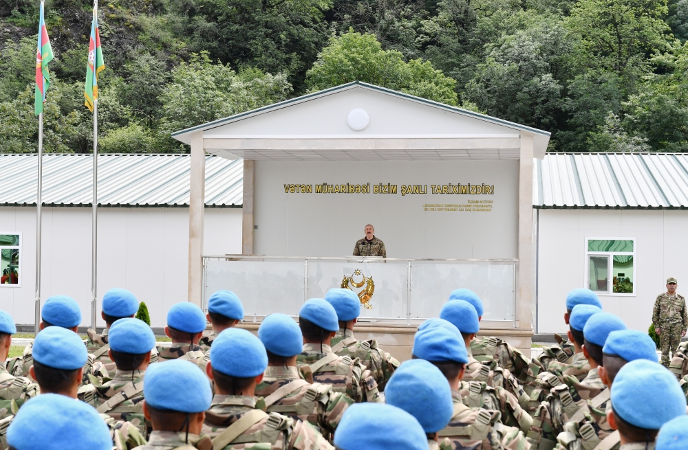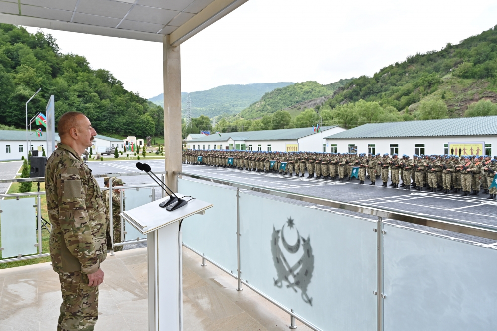 Biz indi bütün sərhəd boyunca yerləşmişik. Bütün sərhədlərdə hərbi hissələr yaradılmışdır. Müharibədən keçən ilyarım ərzində biz gecə-gündüz çalışmışıq ki, ordumuzu daha da gücləndirək, daha da müasir silahlarla təchiz edək, sərhəd boyunca bütün əlverişli mövqelərə sahib olaq, yerləşək və buna nail olduq. Altı ay bundan əvvəl Hadrutda birinci komando hərbi hissəsi açılmışdır. Bu gün Kəlbəcərdə ikinci komando hərbi hissəsi açılır. Növbəti komando hərbi hissələrinin açılması nəzərdə tutulur və bu silahlı birləşmələrdə minlərlə azərbaycanlı xidmət edəcək. Bu, bizim gücümüzü daha da artıracaq.