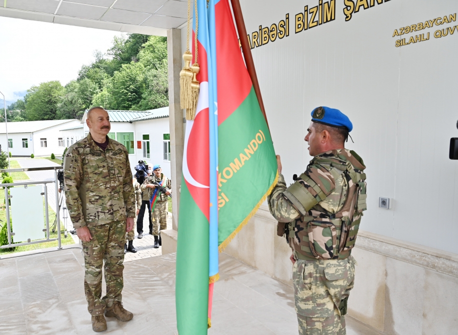 Azərbaycan Respublikasının Prezidenti, Silahlı Qüvvələrin Müzəffər Ali Baş Komandanı İlham Əliyev iyunun 26-da – Silahlı Qüvvələr Günündə Kəlbəcər rayonuna səfəri çərçivəsində komando hərbi hissəsinə döyüş bayrağının verilməsinə həsr olunmuş təntənəli mərasimdə iştirak edib.