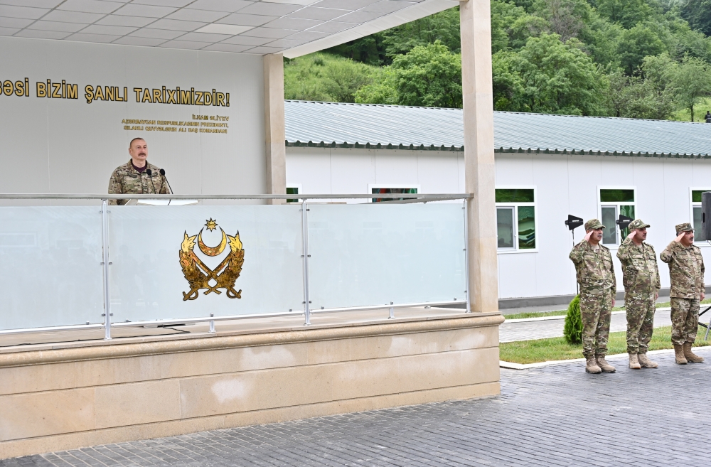 Biz Kəlbəcəri bir güllə atılmadan azad etdik, öz doğma diyarımızı qaytardıq və bu gün Kəlbəcərdə quruculuq işləri gedir. Mən ikinci dəfədir Kəlbəcərə gəlirəm və bu gün də bir çox tədbirlər var. Kəlbəcərin infrastrukturu, elektrik təchizatı, su təchizatı, evlərin tikilməsi – artıq buna start verilir. Əlbəttə ki, biz, ilk növbədə, hərbi təyinatlı yolları inşa etməliydik və bunu etdik. Bu gün bu hərbi hissənin açılması bir daha göstərir ki, biz istədiyimizə nail olacağıq – Qarabağı və Şərqi Zəngəzuru bərpa edəcəyik. Artıq bu proses başlamışdır və ilk növbədə, bu bölgədə – Qarabağda və Şərqi Zəngəzurda bizim hərbi gücümüz daim möhkəm olmalıdır. Ona görə bugünkü mərasim xüsusi məna daşıyır, rəmzi məna daşıyır.
