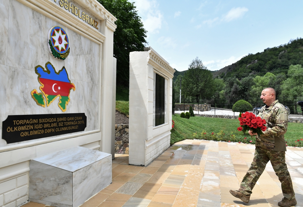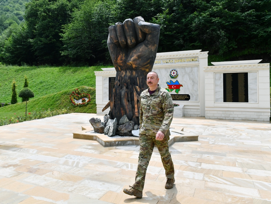 Sonra Prezident İlham Əliyev hərbi şəhərciyin ərazisində uzunömürlülük rəmzi kimi çinar ağacı əkib, şəhidlərin xatirəsinə ucaldılan abidə-kompleksini və “Dəmir yumruq” abidəsini ziyarət edib.
