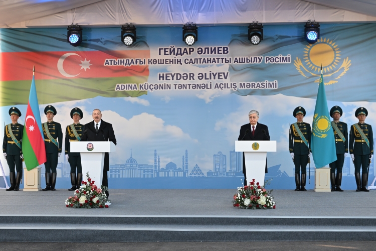 Bu gün biz müttəfiqlik səviyyəsinə çatmış əməkdaşlığımızın möhkəmləndirilməsinə dair sonrakı addımları müəyyənləşdirdik. Biz müttəfiqlərik, biz qardaşlarıq, biz dostlarıq. Bugünkü mərasim bizim münasibətlərimizin sarsılmazlığına, qardaşlığımıza və qarşılıqlı hörmətimizə daha bir sübutdur. Heydər Əliyevin xatirəsinə bu cür münasibətə, dostluğa, qardaşlığa görə Prezidentə və bütün qazaxıstanlı qardaşlarımıza təşəkkürümü bildirmək istəyirəm. Sağ olun.