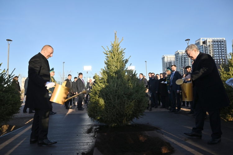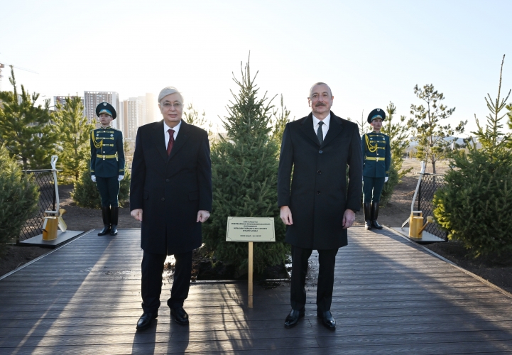 Sonra Azərbaycan Prezidenti İlham Əliyev və Qazaxıstan Prezidenti Kasım-Jomart Tokayev Heydər Əliyev küçəsində yerləşən Botanika bağında ağac əkiblər.