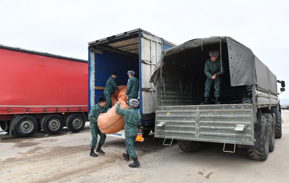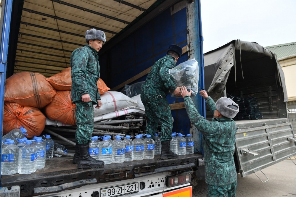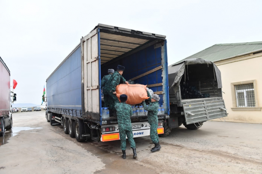 Bildirilib ki, DSX-yə məxsus 2 TIR vasitəsilə zəlzələdən zərərçəkmişlər üçün yola salınan növbəti humanitar yardıma xüsusi hərbi qış çadırı, yarımyun ədyal, yataq kisəsi (qış şəraiti üçün), yarımyun corab, yarımyun əlcək, yarımyun köynək, qış termal alt paltarı, odun sobası (bütün ləvazimatları ilə), içməli “Sərhədçi” suyu (5 litrlik qablaşdırmalarda) daxildir.