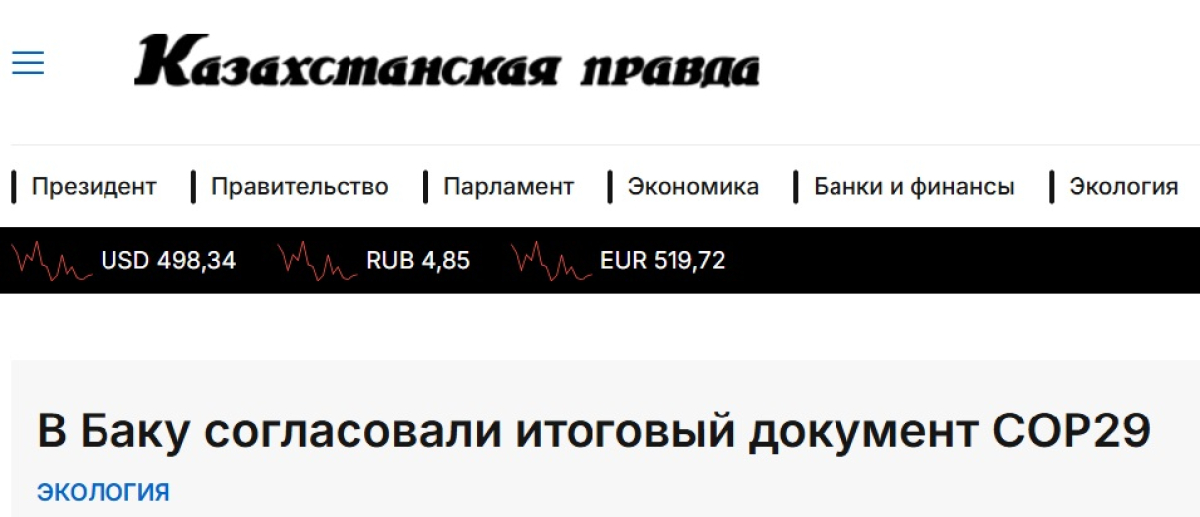 Qazaxıstanın media orqanlarında Bakıda keçirilən BMT-nin İqlim Dəyişmələri üzrə Çərçivə Konvensiyasının Tərəflər Konfransının 29-cu sessiyasının (COP29) yekunları geniş işıqlandırılıb.