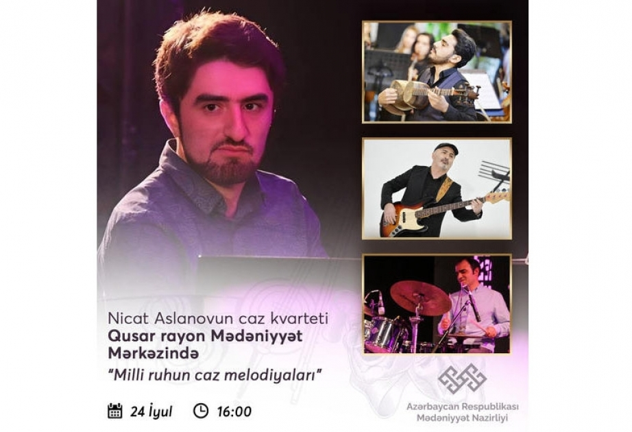Nazirlikdən bildirilib ki, bu çərçivədə Nicat Aslanovun caz kvarteti bu gün Qusar rayon Mədəniyyət Mərkəzində “Milli ruhun caz melodiyaları” adlı konsert proqramı ilə çıxış edəcək.