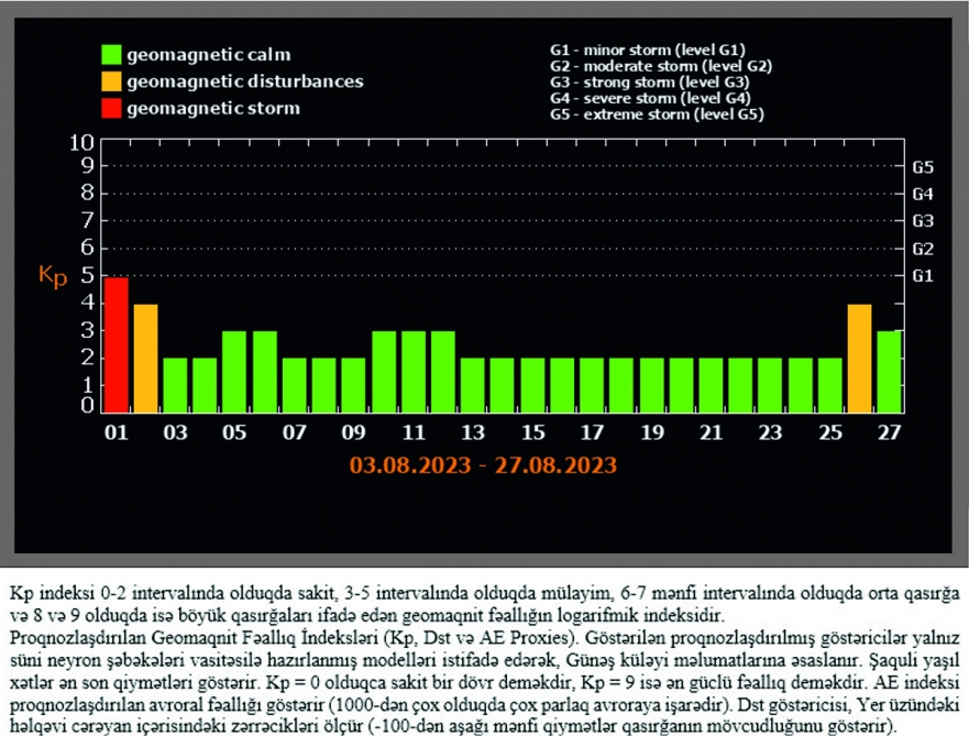 Elm və Təhsil Nazirliyi N.Tusi adına Şamaxı Astrofizika Rəsədxanası kosmik hava durumu və proqnozunu açıqlayıb.