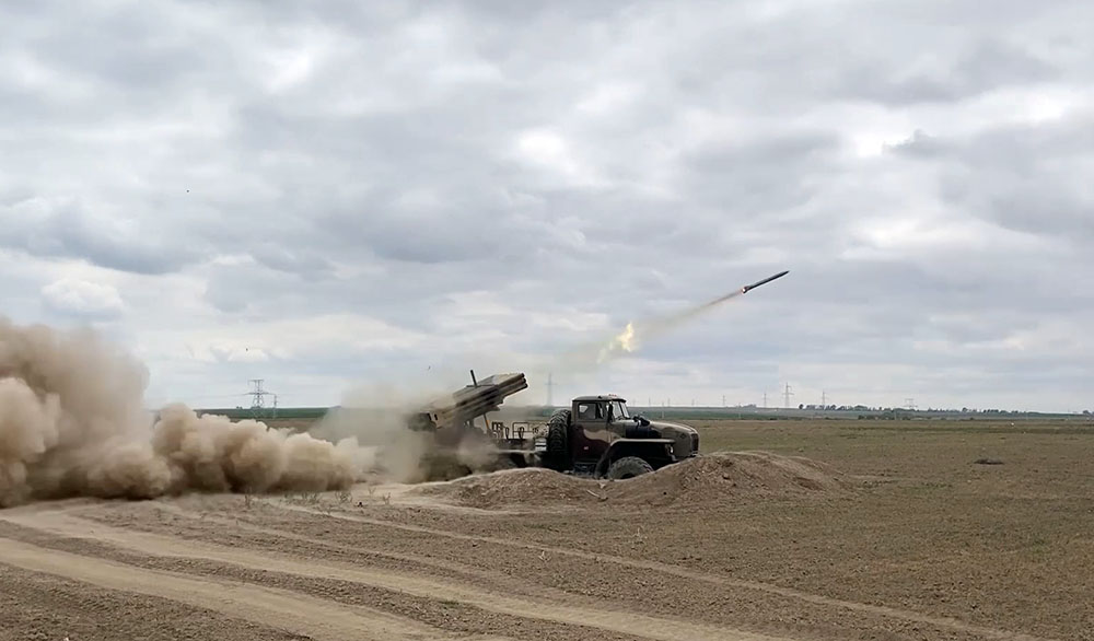 Daha sonra atəş mövqelərini tutaraq reaktiv yaylım atəşi sistemi, özüyeriyən haubitsalar və artilleriya qurğularından döyüş atışları icra edilməklə şərti düşmən hədəfləri yüksək dəqiqliklə məhv edilib.