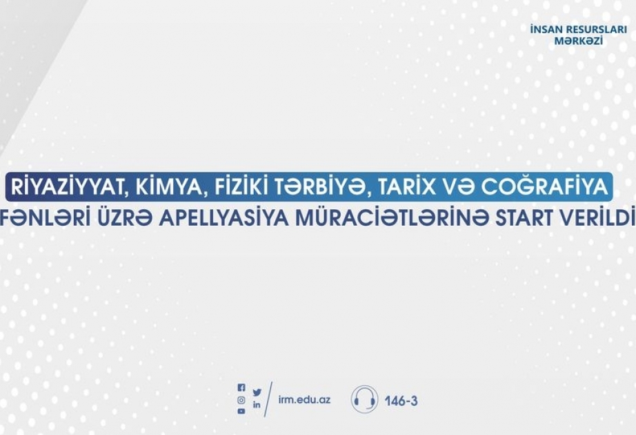 Müəllimlərin işə qəbulu (MİQ) üzrə müsabiqənin riyaziyyat, kimya, fiziki tərbiyə, tarix və coğrafiya fənləri üzrə test imtahanlarının apellyasiya müraciətlərinə qəbul başlayıb.