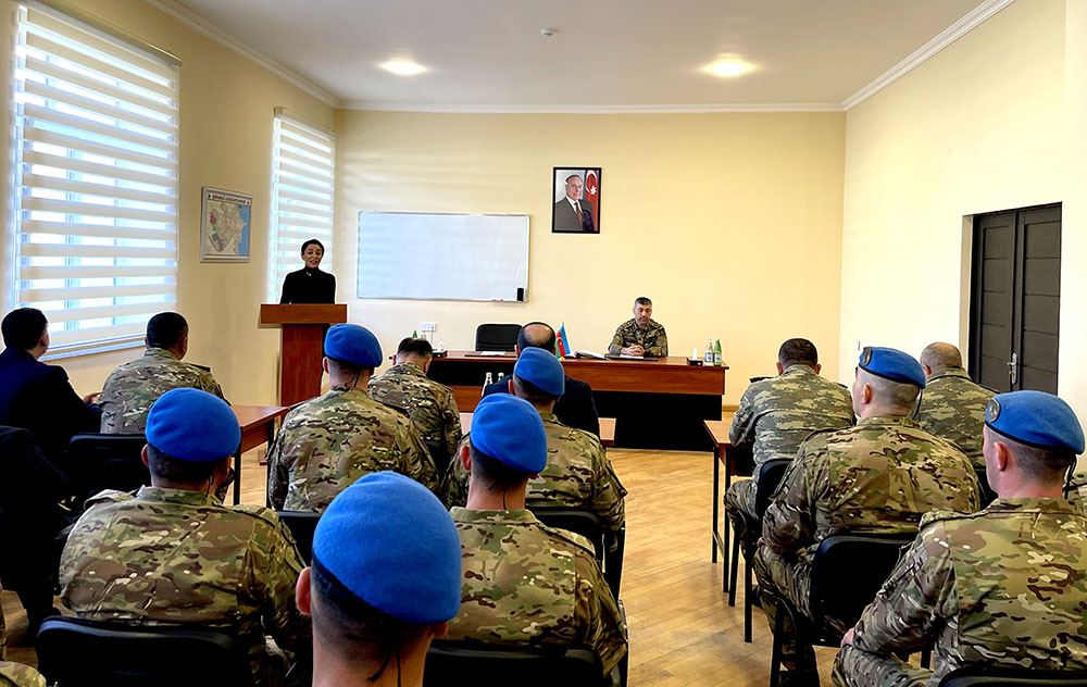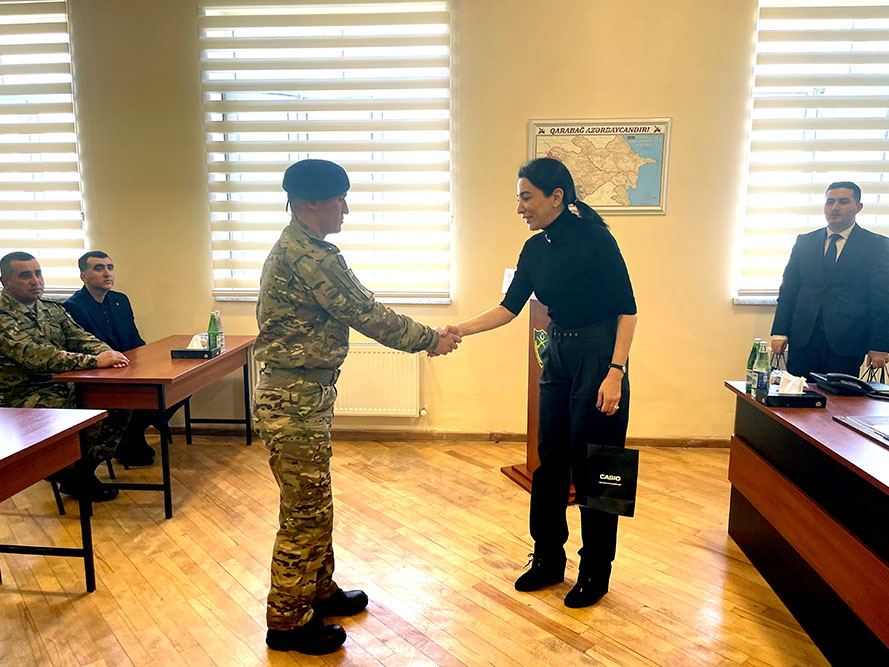 Hərbi qulluqçuların hüquqlarının müdafiəsi ilə bağlı mühazirə ilə çıxış edən S.Əliyeva xidmətdə fərqlənən bir qrup hərbi qulluqçuya hədiyyələr təqdim edib.