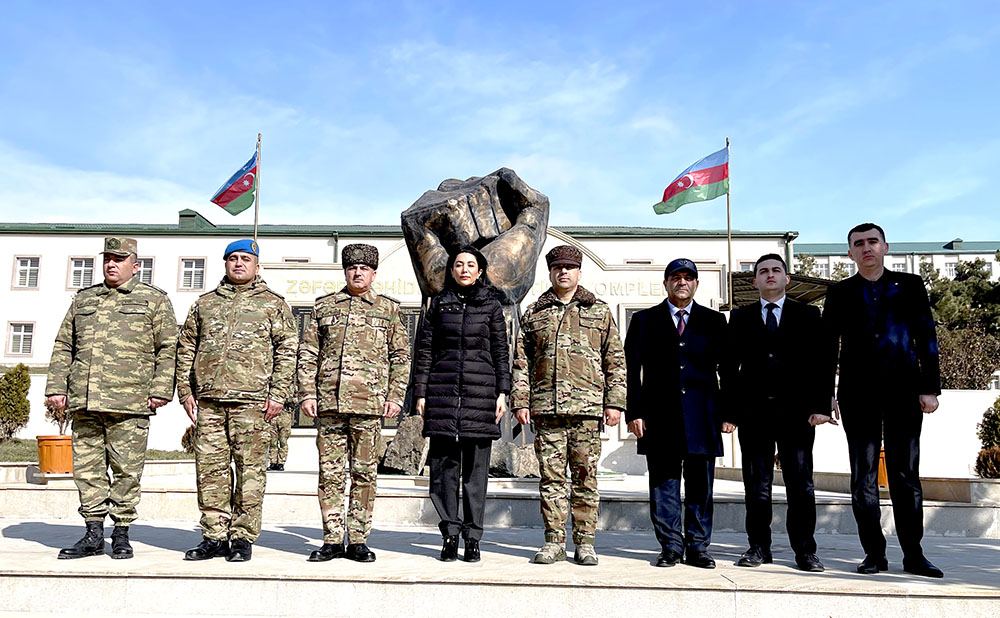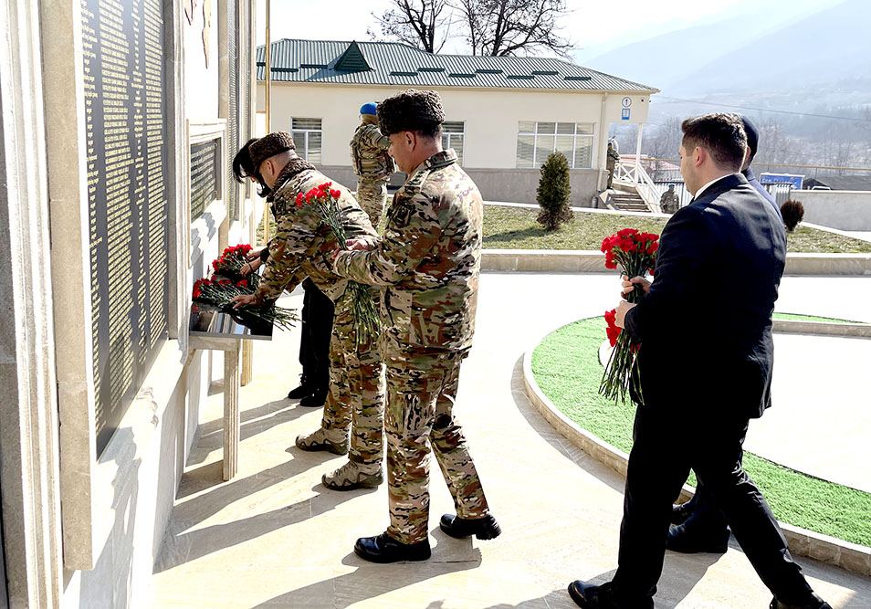 Aparatdan bildirilib ki, əvvəlcə hərbi hissənin ərazisində şəhidlərin əziz xatirəsinə ucaldılan abidə kompleksi ziyarət edilərək önünə gül dəstələri düzülüb.