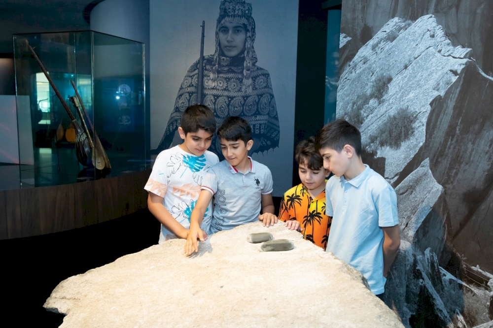 Ekskursiya çərçivəsində uşaqlar mərkəzdə Azərbaycanın qədim tarixini, zəngin mədəniyyətini əks etdirən sərgi ilə də tanış olublar.