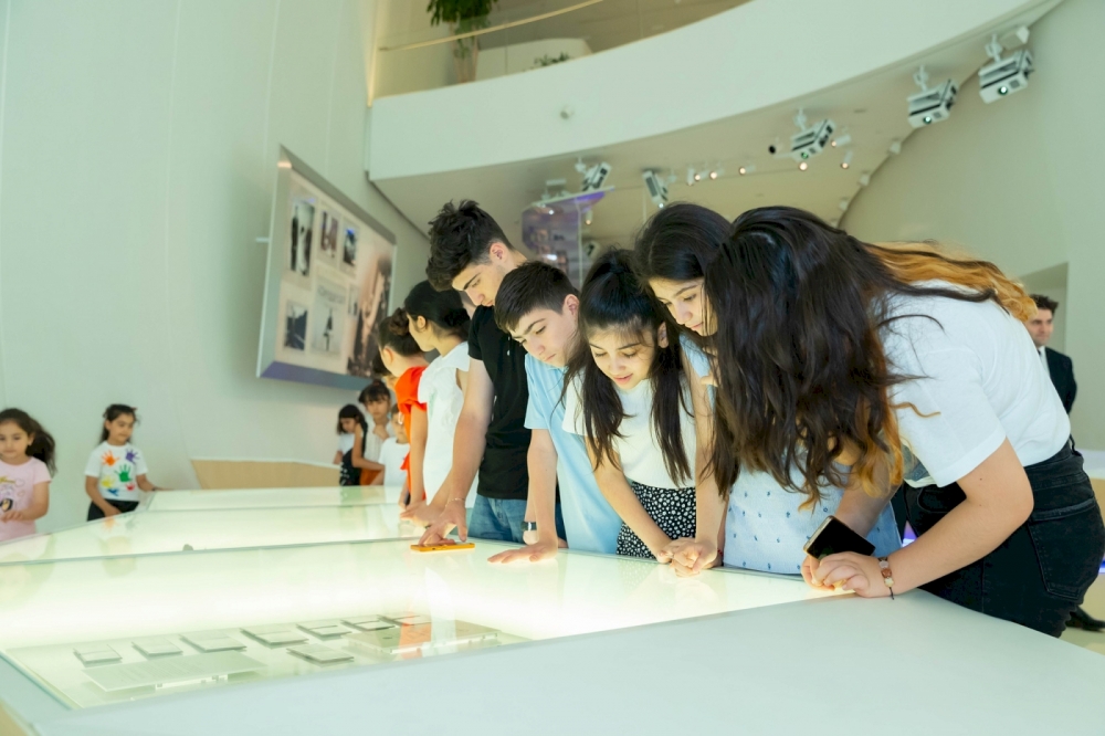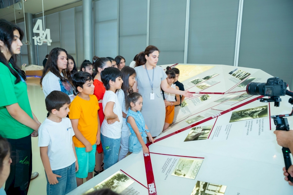 Uşaqlar Ulu Öndər Heydər Əliyevin həyat və fəaliyyətinin bütün dövrlərini əhatə edən video və fotoarxiv sənədlər, eləcə də müxtəlif eksponatlarla tanış edilib.