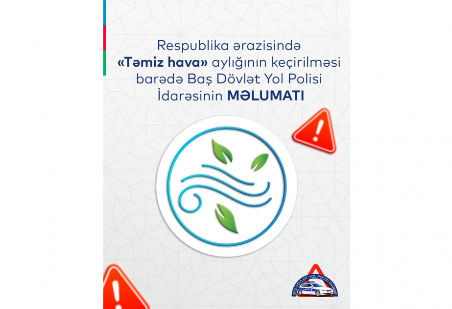 Oktyabrın 10-dan noyabrın 10-dək Azərbaycan Respublikası Daxili İşlər Nazirliyinin Baş Dövlət Yol Polisi İdarəsi Ekologiya və Təbii Sərvətlər Nazirliyi ilə birgə respublika ərazisində “Təmiz hava” aylığına start veriləcək.