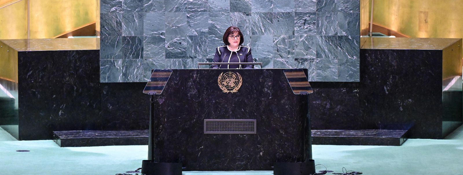 Milli Məclisin sədri Sahibə Qafarova Amerika Birləşmiş Ştatlarının Nyu-York şəhərinə işgüzar səfəri çərçivəsində Birləşmiş Millətlər Təşkilatında (BMT) keçirilən “Dayanıqlı İnkişaf Məqsədlərinə nail olunmasında transformativ həll yolu kimi sıfır tullantıların rolu” mövzusunda keçirilən yüksək səviyyəli iclasda iştirak edib.