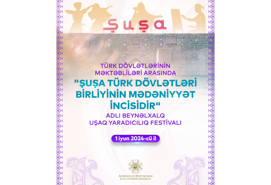 İyunun 1-də Şuşa şəhərində “Şuşa türk dövlətləri birliyinin mədəniyyət incisidir” adlı beynəlxalq uşaq yaradıcılıq festivalı keçiriləcək.