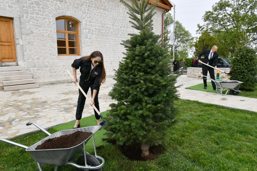 Dövlətimizin başçısı, Birinci xanım və ailə üzvləri məscidin həyətində ağac əkiblər.