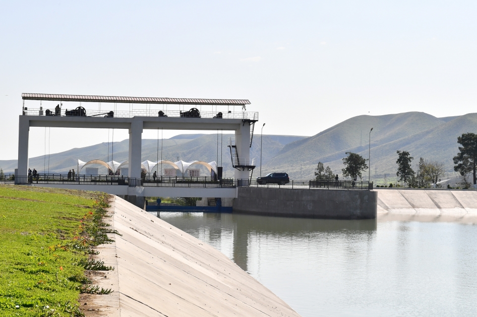 Prezident İlham Əliyev Suqovuşan su anbarını işə salıb.