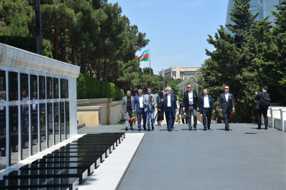Sonra Şəhidlər xiyabanına gedən nümayəndə heyəti Azərbaycanın müstəqilliyi və ərazi bütövlüyü uğrunda canlarından keçmiş qəhrəman Vətən övladlarının məzarlarını ziyarət edib, “Əbədi məşəl” abidəsinin önünə əklil qoyub.