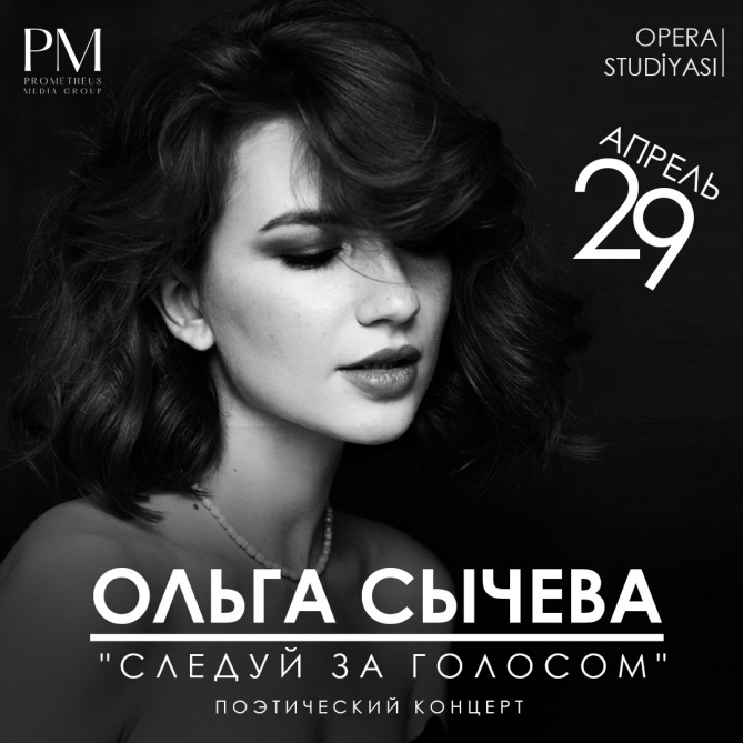 Aprelin 29-da Üzeyir Hacıbəyli adına Bakı Musiqi Akademiyası nəzdində Opera Studiyasının konsert zalında səsi ilə çox sayda qəlbləri fəth edən qiraətçi Olqa Sıçevanın “Səsin ardınca get” adlı poetik gecəsi təşkil olunacaq.