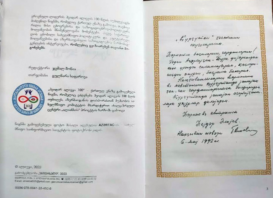 “Heydər Əliyev-100” adlı kitab Tbilisidə gürcü dilində nəşr olunub.