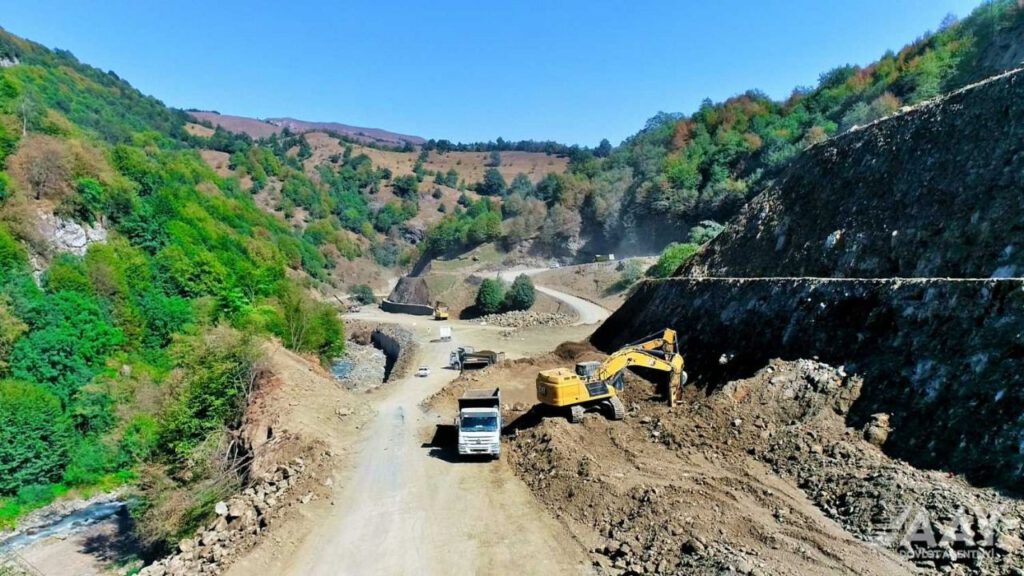 Hazırda layihənin müəyyən hissələrində layihə-axtarış, geologiya və torpaq işləri aparılır. Belə ki, tikinti norma və standartlarına uyğun olaraq təməl üçün materialların təmin edilməsi, ağır vərdənə ilə əsasın tələb olunan kipliyə çatdırılması və torpaq yatağının səth sularından qorunması üçün torpaq küvetlərin çəkilməsi işləri görülür. Xüsusi texnikalardan istifadə olunmaqla yolun genişləndirilərək profilə salınması və 15-21.5 metr enində yeni torpaq yatağının inşası işləri həyata keçirilir.