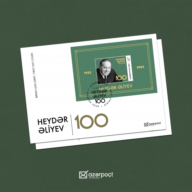 Qeyd edək ki, “Azərpoçt” MMC tərəfindən “Heydər Əliyev 100 il” loqolu, 6 müxtəlif nominalda, ümumi 4 581 000 tirajla standart poçt markaları və bundan əlavə markalı zərflər hazırlanıb, daxili və xarici poçt göndərişlərində istifadə üçün dövriyyəyə buraxılıb.