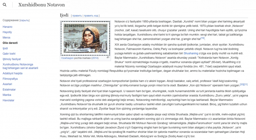 “Wikipediya” Elektron Ensiklopediyasında Xurşidbanu Natəvan haqqında özbək dilində məlumatlarla https://uz.wikipedia.org/wiki/Xurshidbonu_Notavon link vasitəsilə tanış olmaq mümkündür.