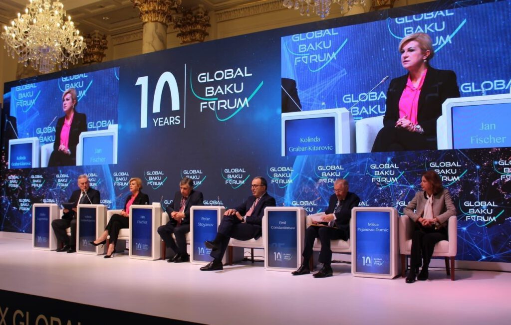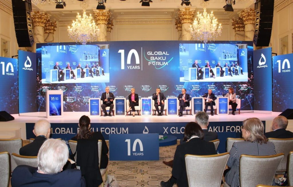 Qlobal Bakı Forumunda yeni dünya nizamına təhdid yaradan amillərə, o cümlədən təhlükəsizlik məsələsinə və sülhün təmin olunması üçün perspektivlərə, bölünmüş dünyada dayanıqlılığın qurulmasına, onun qlobal sülhə təsirinə nəzər salınacaq, qarşıda duran çağırışların həlli yolları müzakirə olunacaq, dünyanı sarsıdan münaqişələrə, meqatəhdidlərə, o cümlədən iqlim, qida və nüvə təhlükəsizliyi məsələlərinə toxunulacaq, postpandemiya dövründə görüləcək işlərlə bağlı fikir mübadiləsi aparılır.