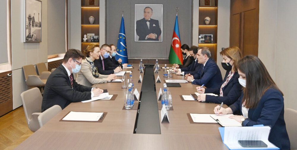 Nazir Ceyhun Bayramov Avropa Şurası rəsmisinə bölgədə mövcud olan münaqişə sonrası vəziyyət, üçtərəfli bəyanatların icrası və bu xüsusda, Azərbaycan tərəfindən atılan addımlar, delimitasiya prosesi, habelə işğaldan azad edilmiş ərazilərdə həyata keçirilən bərpa və yenidən quruculuq işləri ilə bağlı ətraflı məlumat verib. Nazir Azərbaycanın azad olunmuş ərazilərində mina təhlükəsinin doğurduğu ağır fəsadlardan, eləcə də Azərbaycan Hökumətinin həyata keçirdiyi humanitar minadan təmizləmə işlərindən bəhs edib. Hələ 1990-cı illərin əvvəllərindən itkin düşən 4000-ə yaxın azərbaycanlının taleyi ilə bağlı Ermənistan tərəfindən hər hansı məlumatın verilmədiyi də Avropa Şurası Baş katibinin diqqətinə çatdırılıb. Azad edilmiş ərazilərdə aşkarlanan kütləvi məzarlıqların Ermənistan tərəfindən azərbaycanlıların sistematik və məqsədyönlü şəkildə öldürülməsi barədə məlumatların gizlədilməsinin sübutu olduğu bildirilib.
