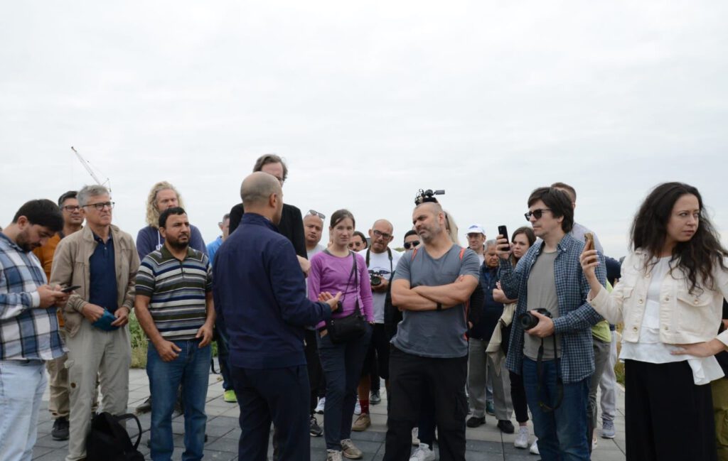 Onlara bərpa işləri haqqında danışılıb. Səyahətçilər şəhərdəki tikinti işlərini müşahidə ediblər.