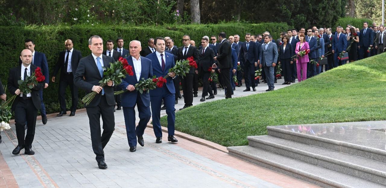 Azərbaycanın Xarici İşlər Nazirliyinin rəhbər heyəti və diplomatik nümayəndəliklərin rəhbərləri Fəxri xiyaban və Şəhidlər xiyabanını ziyarət edib.