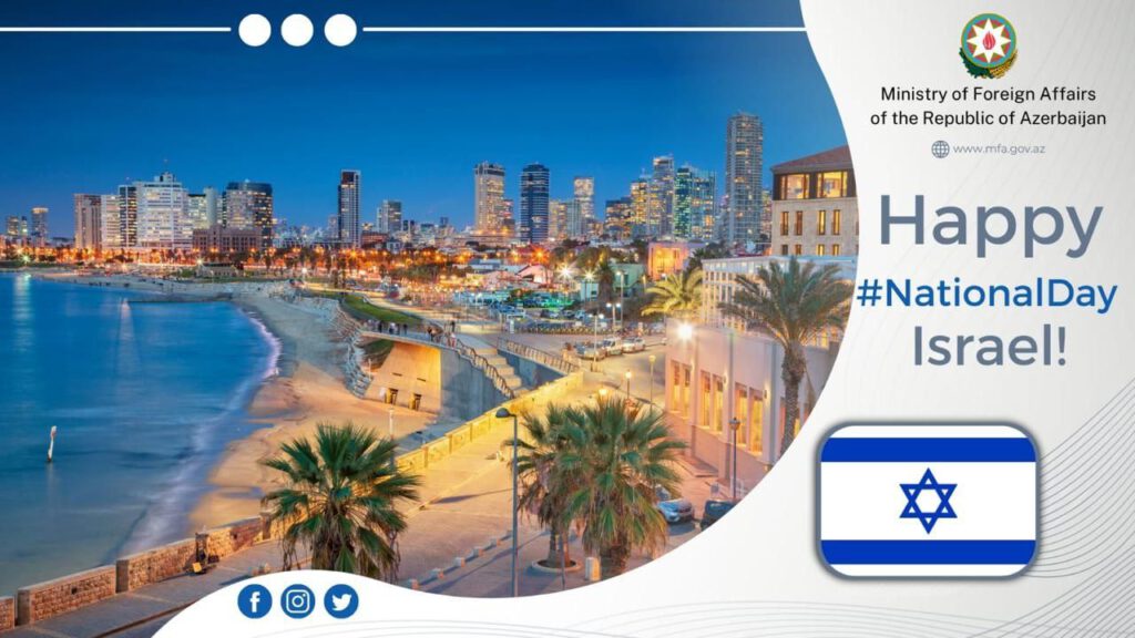“İsrail Dövlətinin müstəqilliyinin 75-ci ildönümündə Azərbaycan-İsrail əlaqələrinin daha da dərinləşməsini səbirsizliklə gözləyirik”, – Azərbaycanın Xarici İşlər Nazirliyinin paylaşımında qeyd edilir.