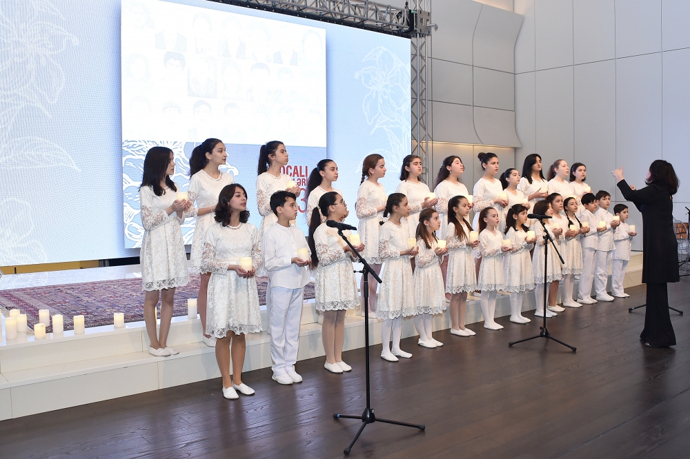 Tədbirdə Xalq yazıçısı Çingiz Abdullayev, Xocalı faciəsinin canlı şahidləri, hərbi ekspertlər də çıxışlar ediblər. Çıxışlarda Xocalı soyqırımının acı nəticələrinin dünya ictimaiyyətinə çatdırılmasında Ümummilli Lider Heydər Əliyevin tarixi xidmətlərindən bəhs edilib. Qeyd olunub ki, Xocalı faciəsinə siyasi-hüquqi qiymət ilk dəfə Azərbaycan xalqının Ulu Öndəri Heydər Əliyev hakimiyyətə qayıtdıqdan sonra verilib. Ümummilli Liderin təşəbbüsü ilə 1994-cü il fevralın 24-də Azərbaycan Respublikasının Milli Məclisi tərəfindən “Xocalı soyqırımı (genosidi) günü haqqında” Qərar qəbul edilib və fevralın 26-sı ölkəmizdə Xocalı Soyqırımı Günü elan olunub.
