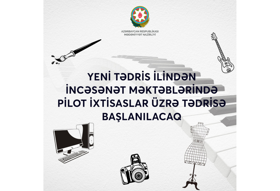 Mədəniyyət Nazirliyi sistemində fəaliyyət göstərən incəsənət məktəblərində yaradıcı sahələrdə peşəkar kadr hazırlığının gücləndirilməsi və innovativ tədris metodlarının tətbiqi məqsədilə növbəti tədris ilindən bir sıra pilot ixtisasların tədrisinə başlanacaq.